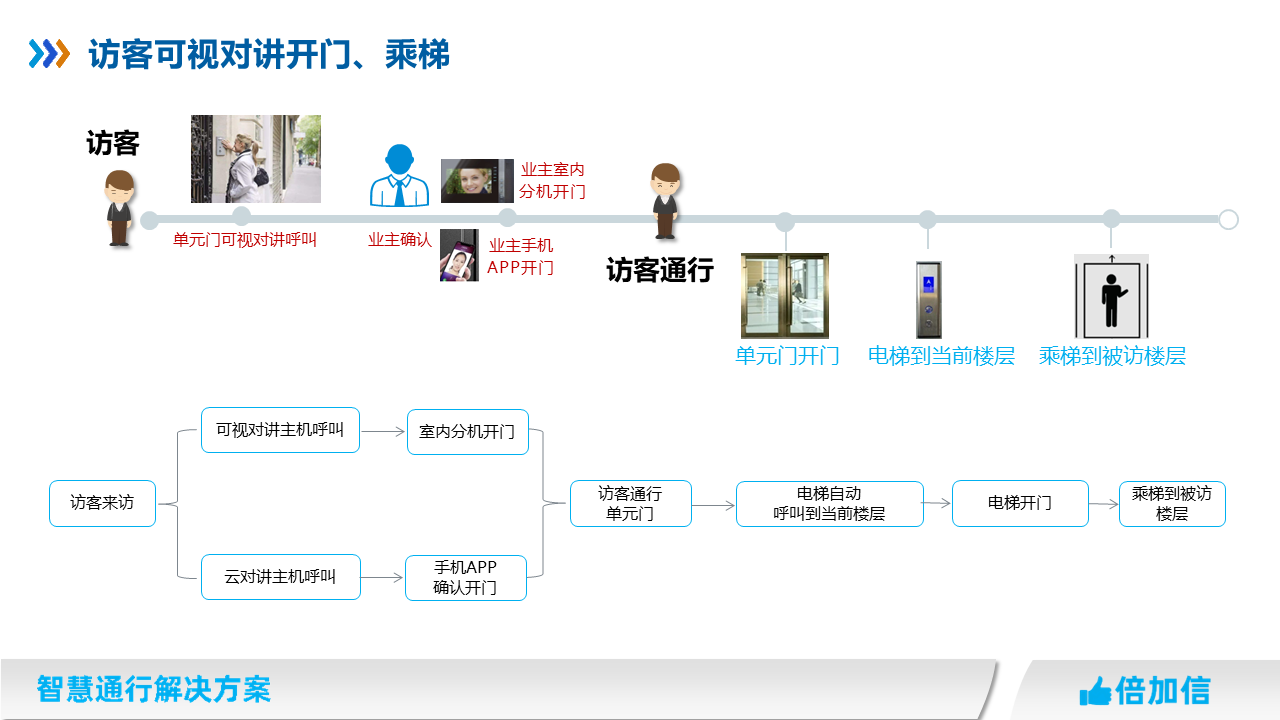 5、住宅項目訪客可在可視對講呼叫業主,實現呼梯聯動招梯和乘梯;
