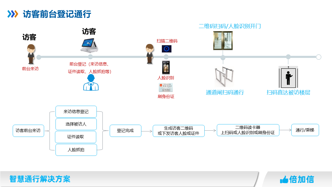 7、同時選配設備可支持其他多種形式訪客通行,如身份證讀卡、臨時訪客卡、訪客密碼等等通行;