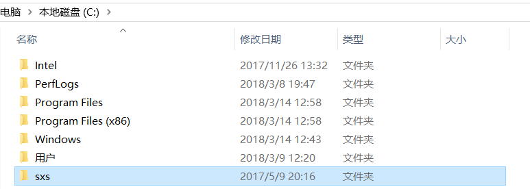 解壓后將 sxs 文件夾復制到C盤目錄下